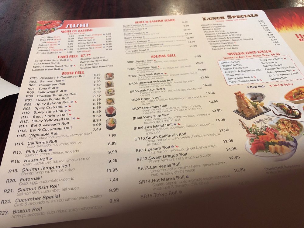Introducing the menu at Hibachi Sushi, located in Raleigh, NC, this casual yet classy restaurant offers a wide array of options for both lunch and dinner. With a focus on Japanese cuisine, Hibachi Sushi provides many vegetarian choices alongside traditional dishes like hibachi steak and sushi rolls. Customer reviews rave about the affordable prices and quick service, making it a favorite spot for college students and families alike. The menu includes appetizers like Vegetable Spring Rolls and Edamame, soups such as Miso Soup and Tomka, and salads like the Seaweed Salad and Grill Shrimp Salad. Whether you're in the mood for a comforting bowl of soup or a fresh salad, Hibachi Sushi has something for everyone. With a convenient location and options for takeout and delivery, this restaurant is a must-visit for those craving delicious Japanese cuisine.
